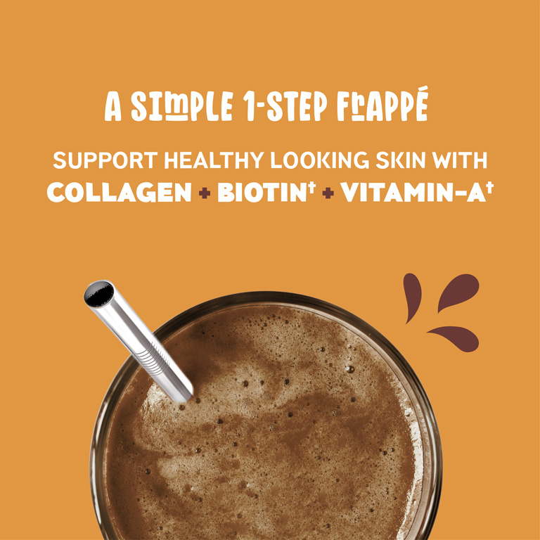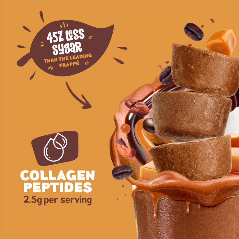 Give your skin and joints a boost with our rich and delicious dairy free Caramel Collagen 1-Step Frappé.